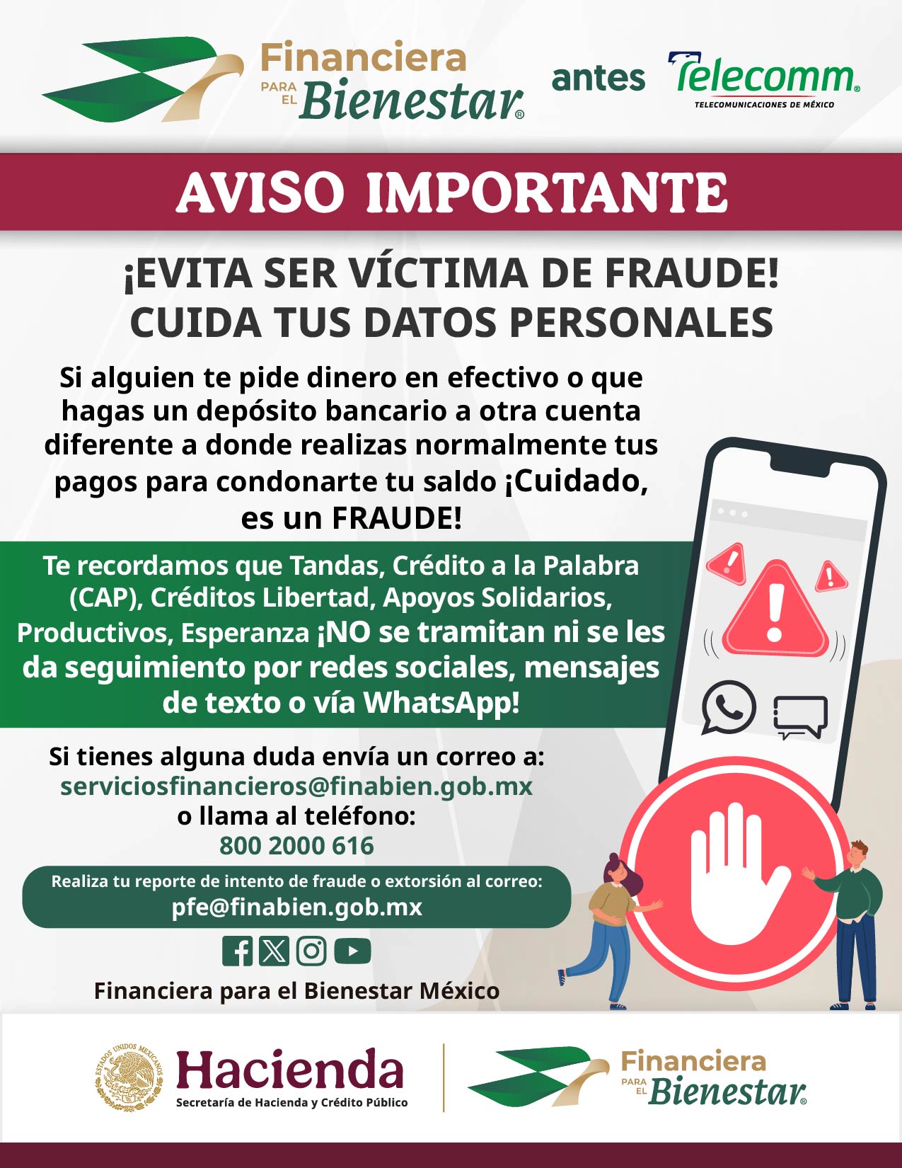 O bien, escribir al correo 📧: serviciosfinancieros@finabien.gob.mx